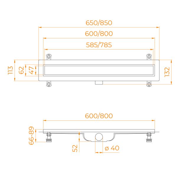 • Небольшая монтажная высота (52 мм), регулируемые ножки (52-70 мм) и наличие гидроизоляционной ленты, такая комплектация значительно ускоряет процесс монтажа.