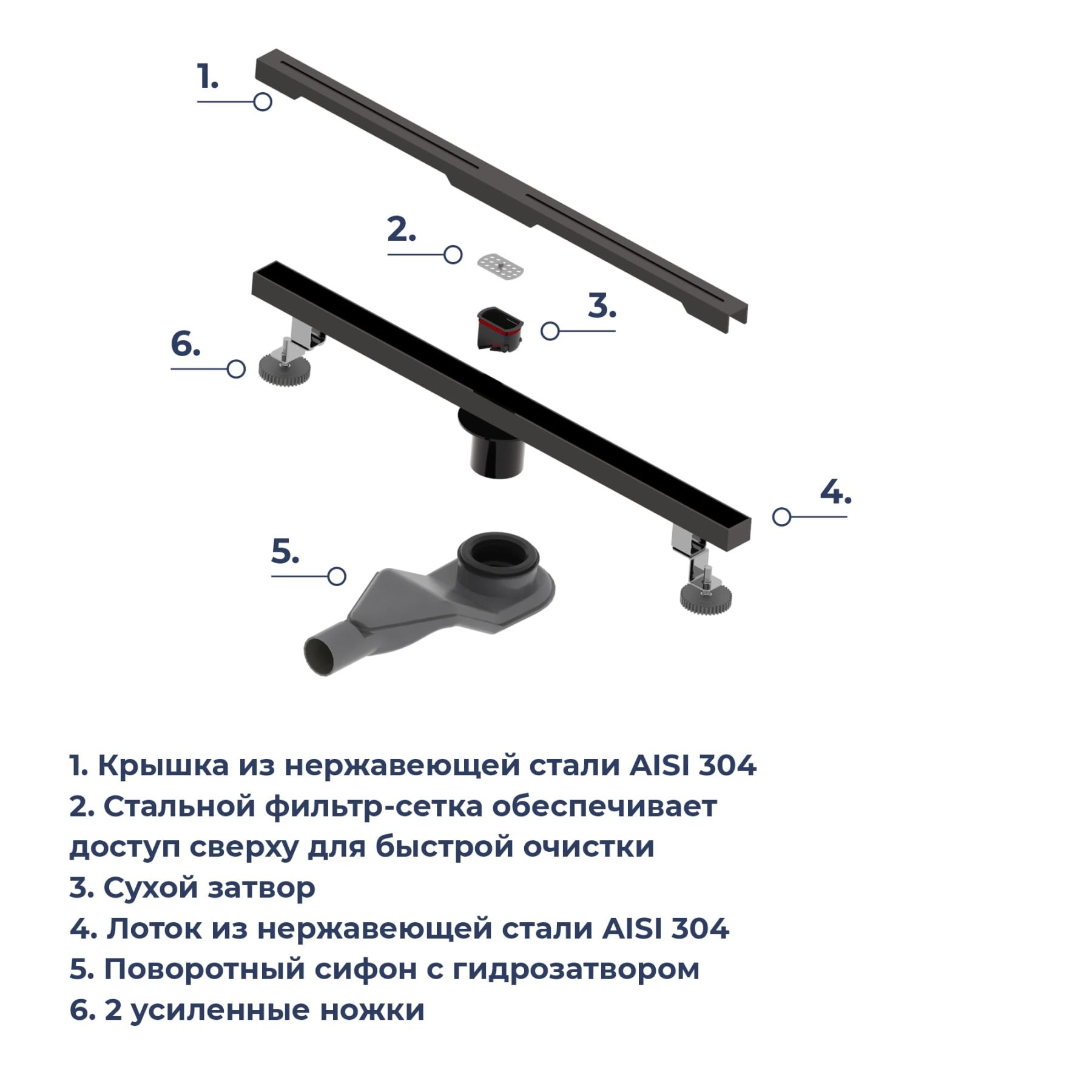 Душевой лоток RGW SDR-52B 76215280-04 80 см чёрный купить