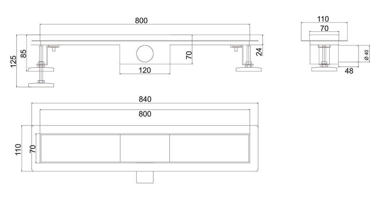 Душевой лоток РМС ТЛ-03-80х7 80см нержавеющая сталь