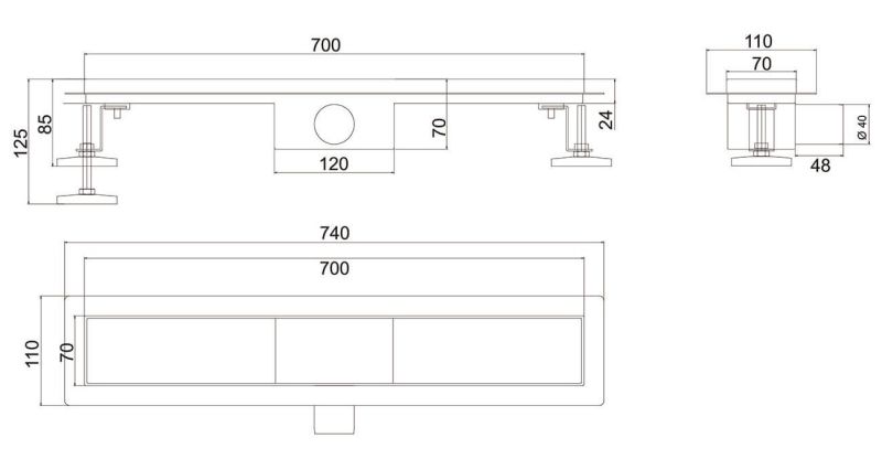 Душевой лоток РМС ТЛ-04-70х7 70см нержавеющая сталь