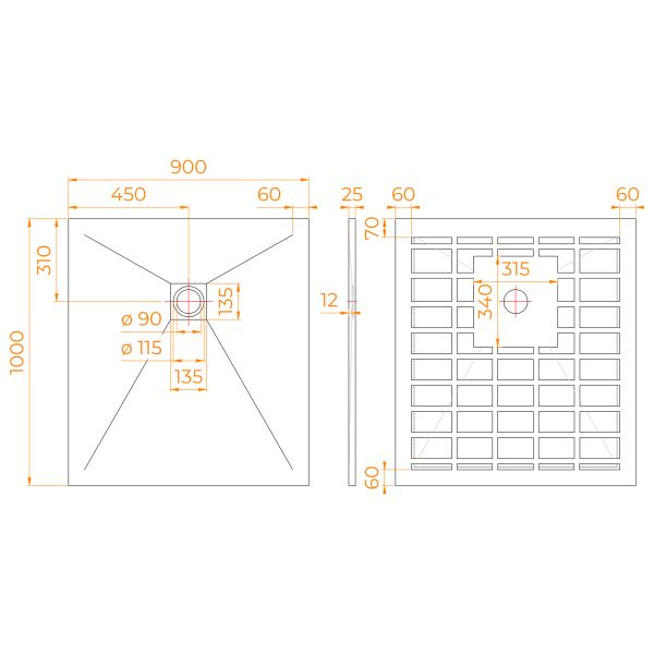 • Широкий размерный ряд: от 800x800 мм с шагом в 10 см до максимального размера 900x1200 мм, что дает возможность подобрать оптимальный поддон для вашей ванной комнаты.