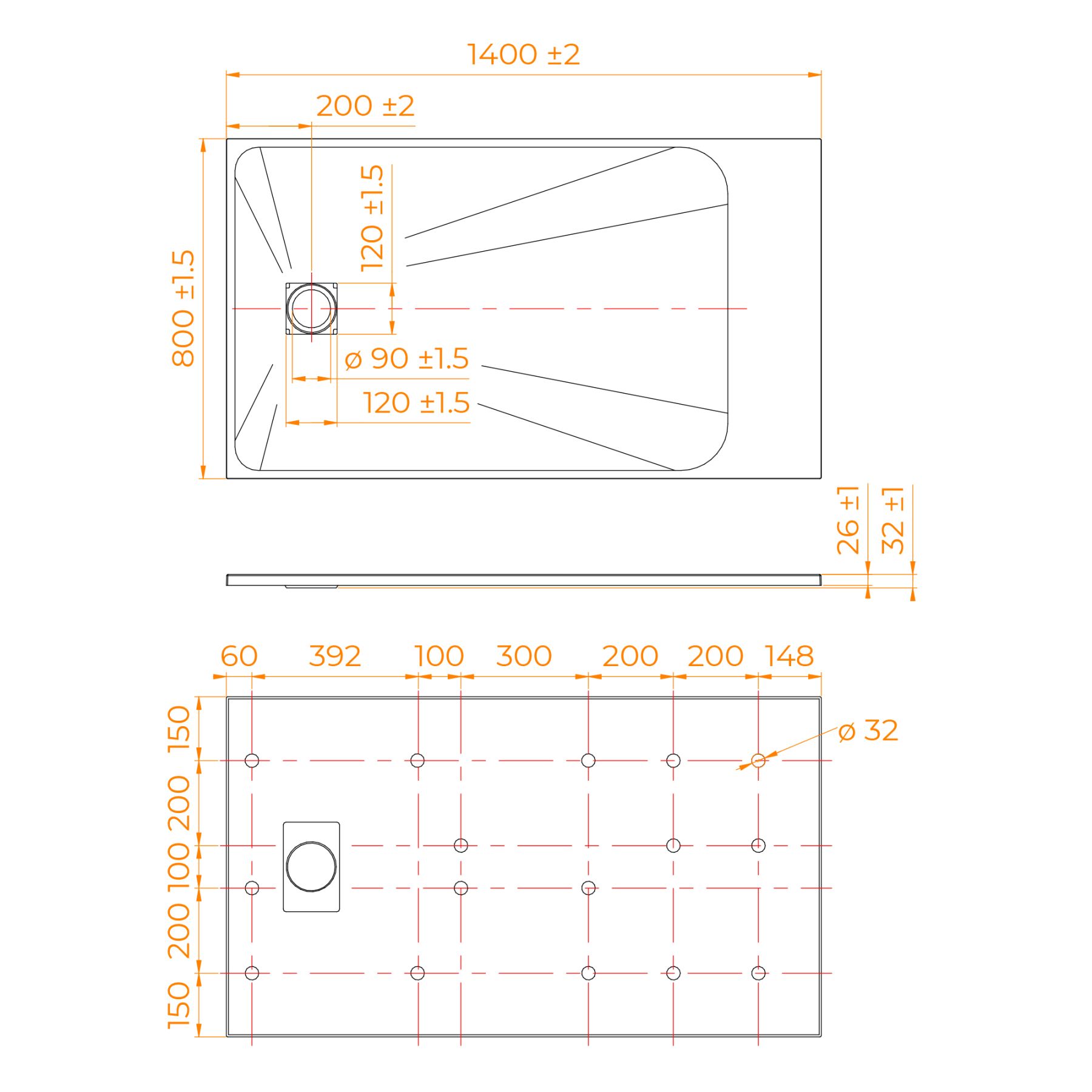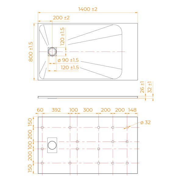 • Общая высота поддона: 26 мм.;