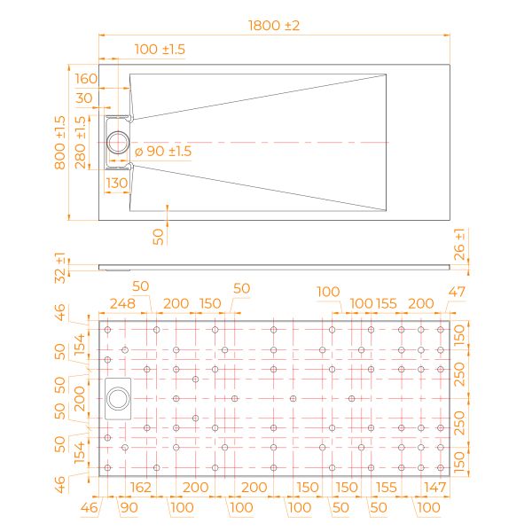 • Общая высота поддона: 26 мм.;