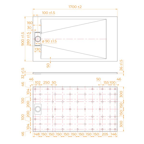 • Общая высота поддона: 26 мм.;