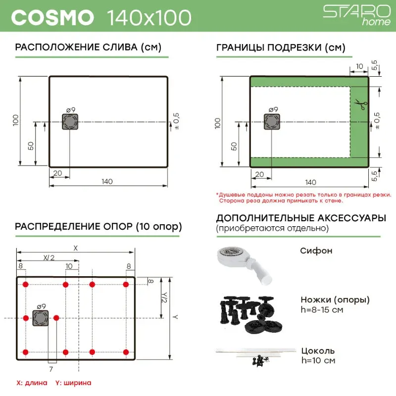 Душевой поддон Starohome Cosmo 22973370 140х100 см