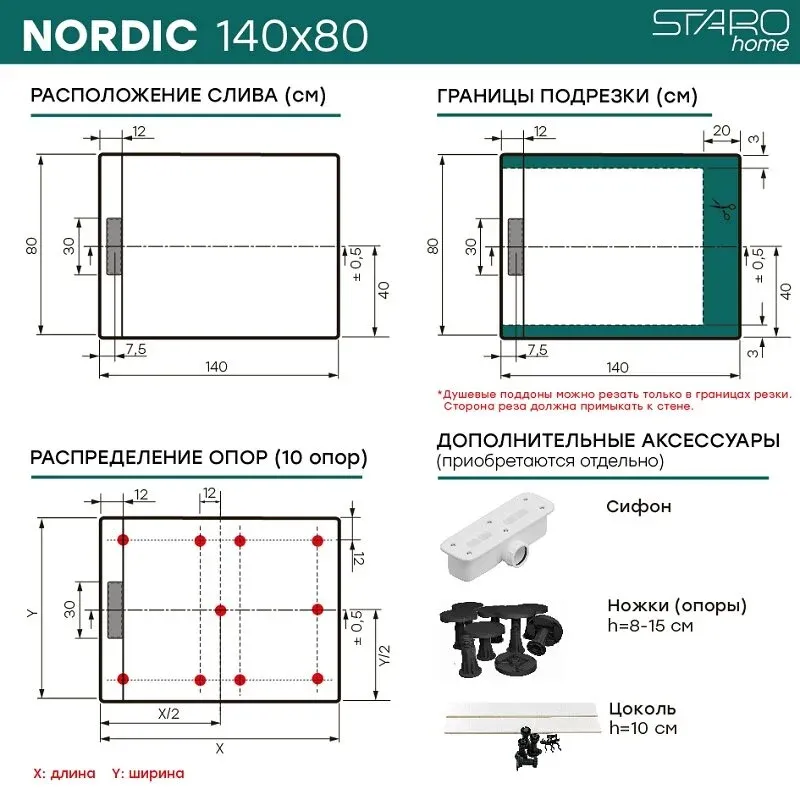 Душевой поддон Starohome NORDIC 19395036 140х80 см купить