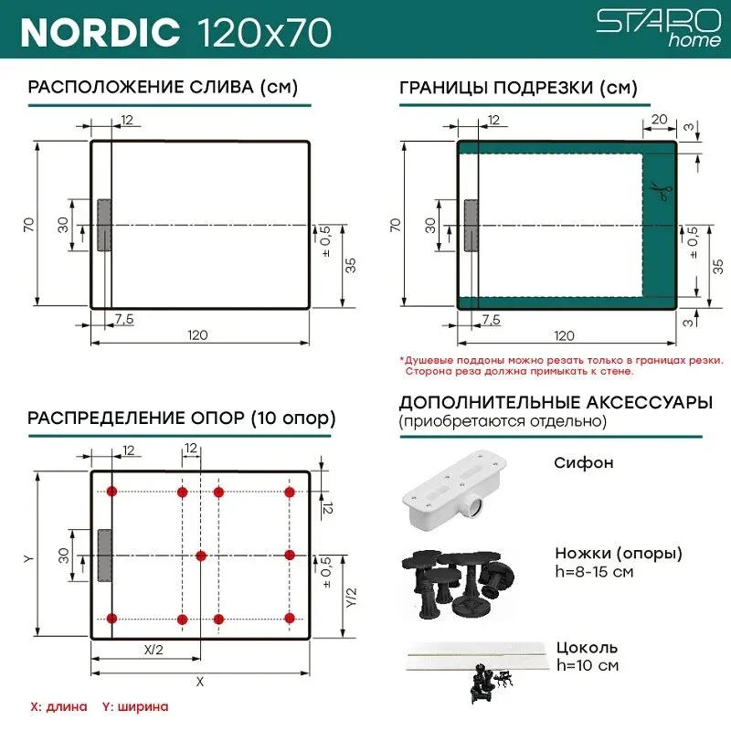 Душевой поддон Starohome NORDIC 21048471 120х70 см