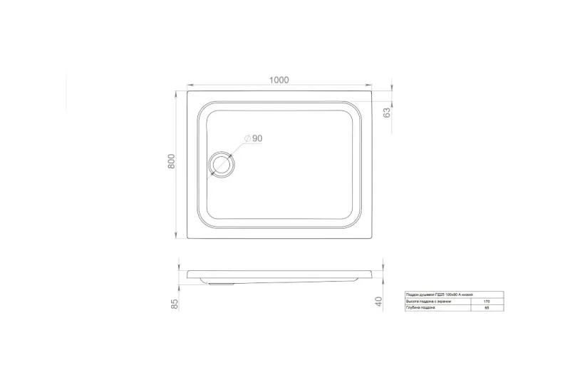 Душевой поддон Triton Щ0000042951 100x80 см белый
