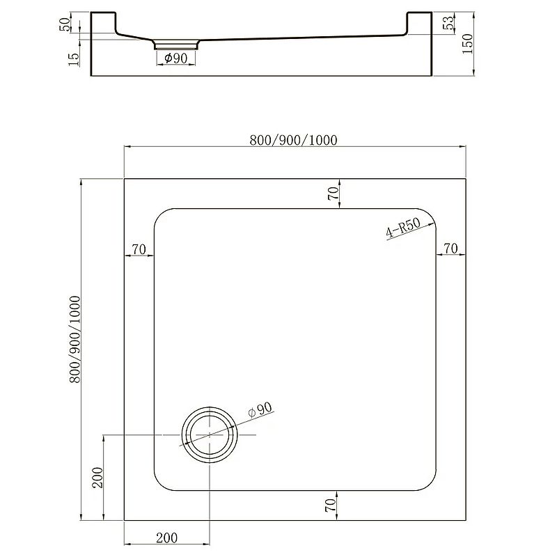 Душевой поддон квадратный Veconi Tezeo Acrylic TZ-52B, 800x800x150, акрил, черный