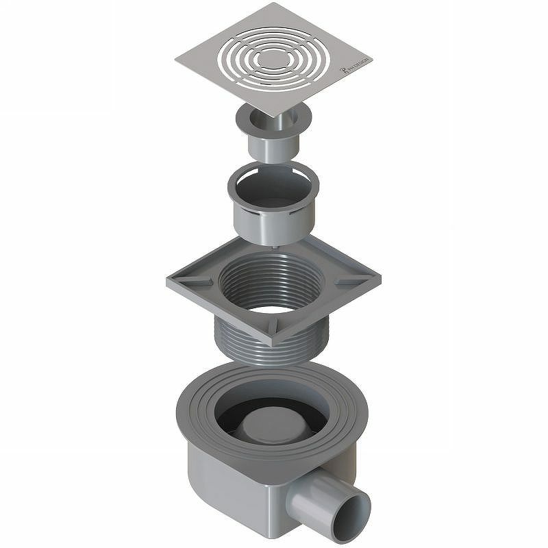 Оснащение: решетка / улавливатель волос / изолирующий фланец.