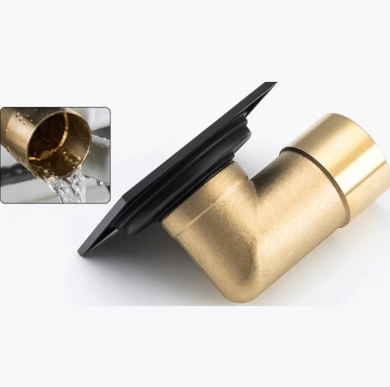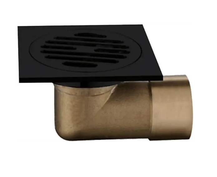 Душевой трап квадратный с горизонтальным выпуском Gappo G81053-6, размер 10 * 10 см, цвет черный. Изготовлен трап из латуни, боковой выпуск 50 мм