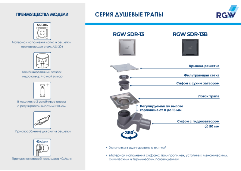 Душевой трап RGW SDR-13B 47211311-04 11см чёрный купить