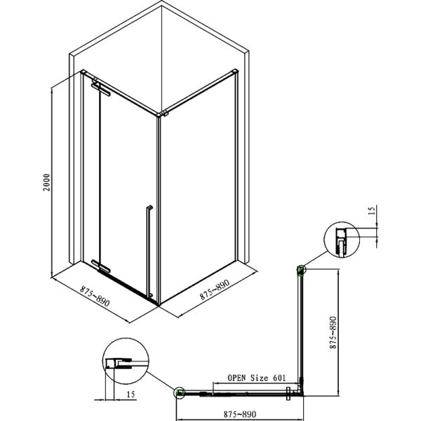 Габариты (ШxВxД): 890x2000x890 мм.
