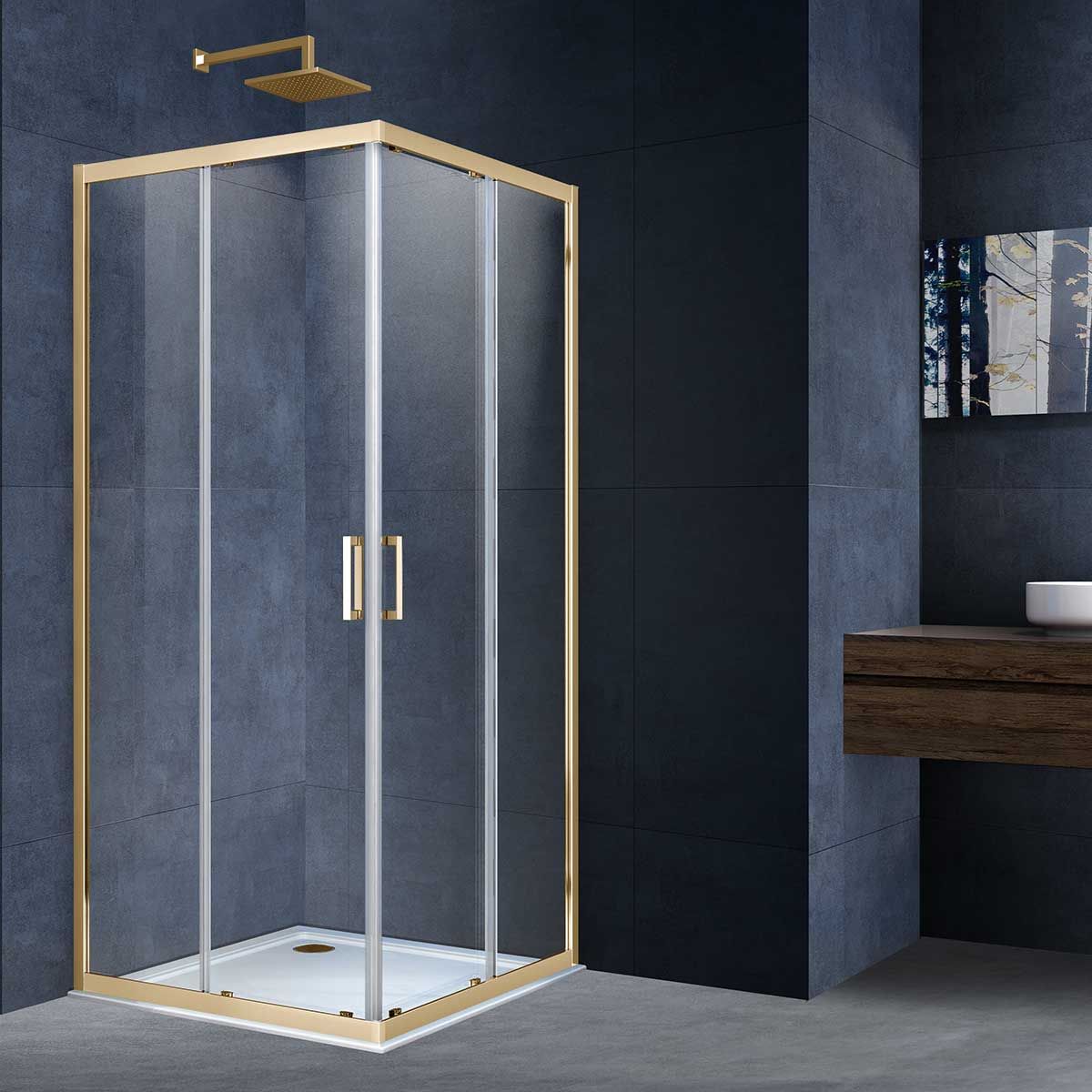 Душевой уголок Vincea Alpha VSS-3AL900CLG, 900*900, брашированное золото, стекло прозрачное купить