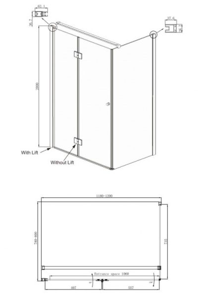 • Ширина входа: распашная часть 55.7 см, складная часть 106 см