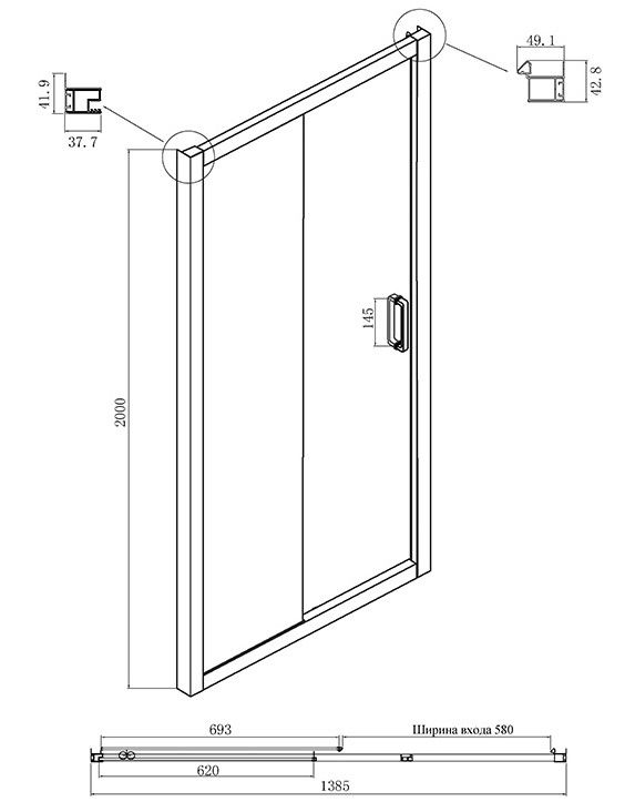 - Конструкция дверей: раздвижная