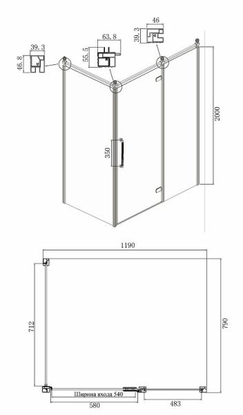 - Размеры (ШхВхД): 1190x2000х790 мм.