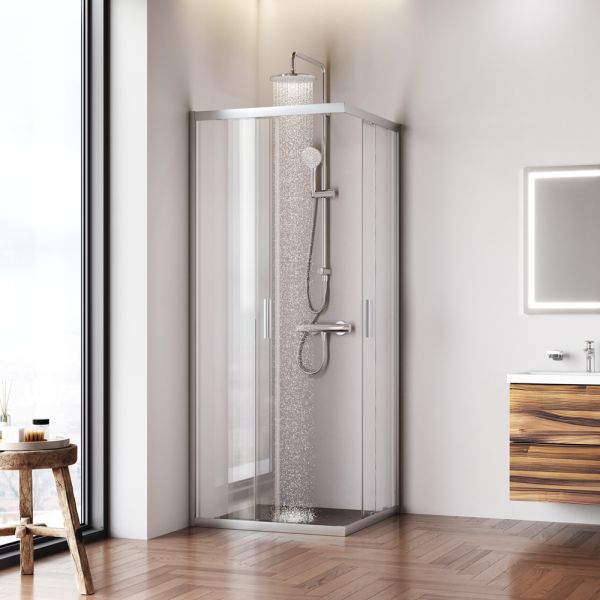 Душевое ограждение выполнено из ударопрочного закаленного стекла. Толщина фиксированного стекла 5 мм, толщина стекла двери 6 мм. Профили ограждения изготовлены из надежного алюминия с премиальным анодированным покрытием. Анодирование обеспечивает равномерный насыщенный цвет и особенную стойкость к механическим повреждениям.