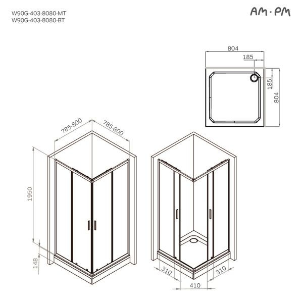 Душевой уголок Am.Pm Gem W90G-403-8080-MT 80x80 см без поддона хром матовый
