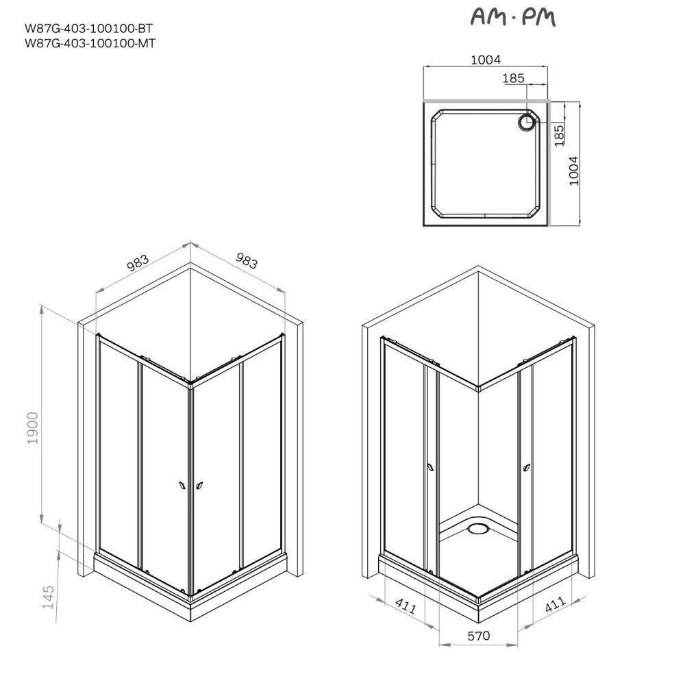 Душевой уголок AM.PM Sunny W87G-403-100100-MT профиль серебристый 100х100 смДушевые ограждения коллекции Sunny, вдохновляющие на свершения, сделают ванную комнату вашим тайным местом силы и перезагрузки. Эстетика и функциональность - то, что моментально приковывает взгляды. Исключительный дизайн, к которому хочется прикоснуться. Великолепное исполнение в матовом черном цвете.Параметры модели 100x100 сантиметров образуют квадратную форму. Высота ограждения достигает 190 сантиметров. Идеальный размер для комфортного пользования. Подходит даже для самых высоких.Ограждение имеет сверхпрочные закаленные стёкла. Толщина фиксированных стекол составляет 4 мм, двери имеют увеличенную толщину 5 мм. Невероятно плавное и легкое открывание двери благодаря двойным усиленным роликам из ABS-пластика. Нижние ролики обладают функцией быстрого снятия для самой лёгкой уборки. Магнитные уплотнители дверей делают ограждение полностью герметичным и предотвращают попадание воды за пределы душевой зоны.Ограждение включает в себя уникальный решение, дизайн ручки в виде крючка, на который можно повесить необходимые для быстрого и удобного пользования вещи. Ручка имеет невероятно комфортный захват, что позволяет открывать дверь без особого усилия.Душевое ограждение AM.PM из коллекции Sunny - идеальное решение для вашей ванной комнаты.