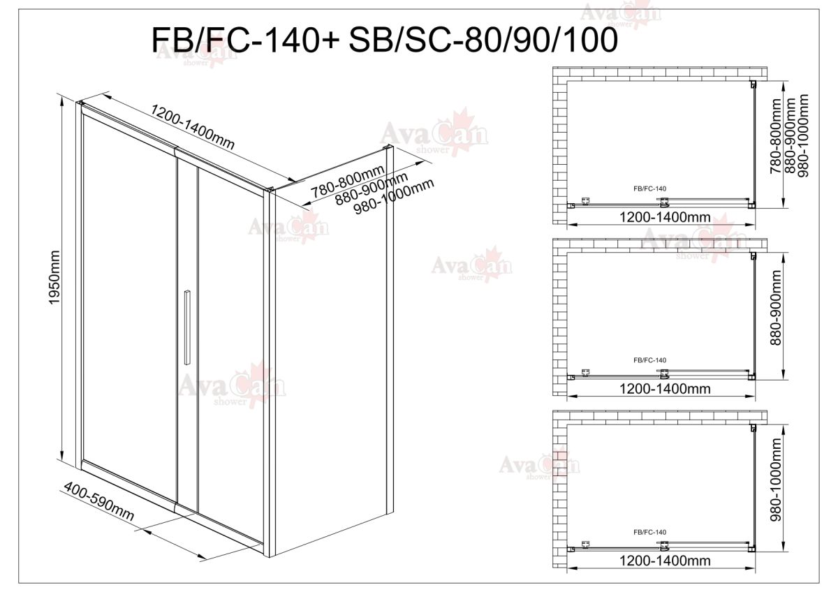 Душевой уголок AvaCan FB 120-140 + SB 100 MT чёрный