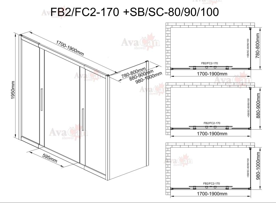 Душевой уголок AvaCan FB2 170-190 + SB90 чёрный