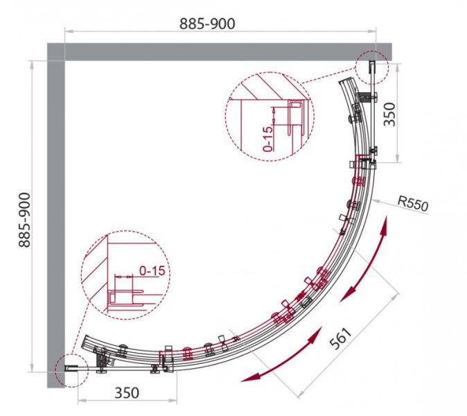Душевой уголок BelBagno четверть круга чёрный ACQUA-R-2-90-C-NERO