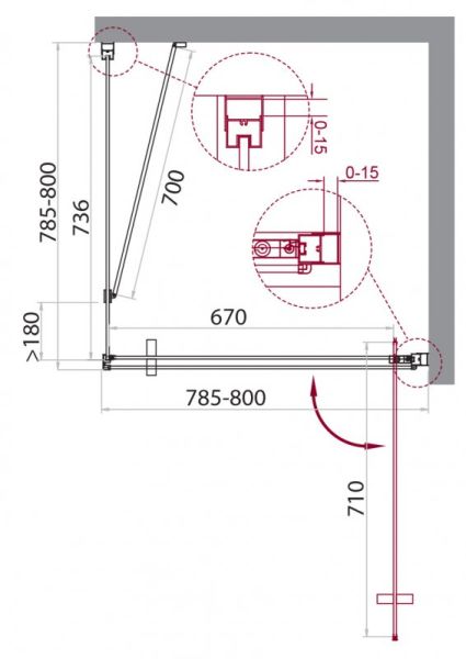 Регулируемый пристенный профиль, позволяет без проблем установить изделие даже при кривизне стен