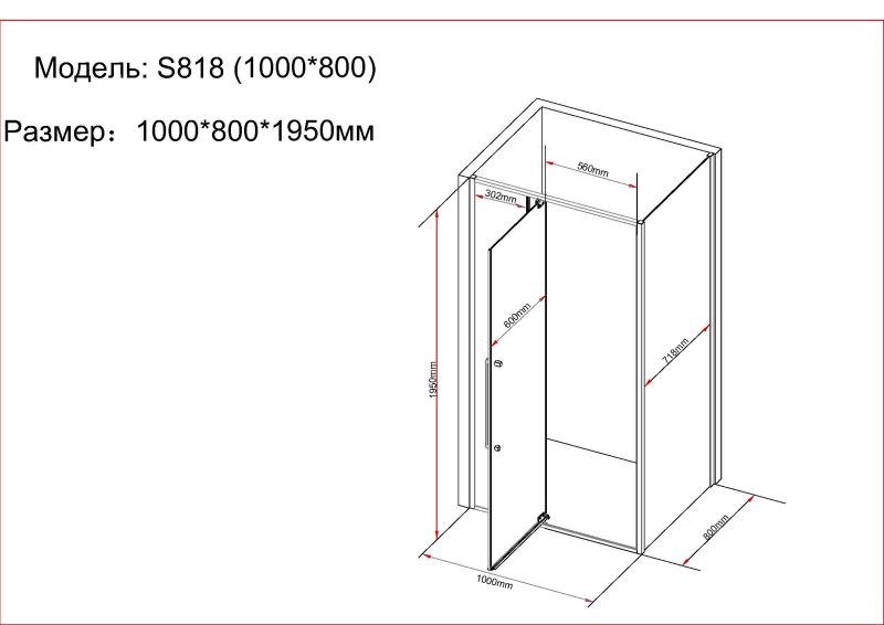 Конструкция дверей распашная на усиленных петлях, расположенных сверху и снизу полотна, такая конфигурация исключает провисание, а также уменьшает габаритный размер двери при открывании. Монтаж изделия реверсивный, возможно установить в любой угол помещения. S 818 – продукт разработанный датскими дизайнерами для стильного оформления Вашей ванной комнаты.
