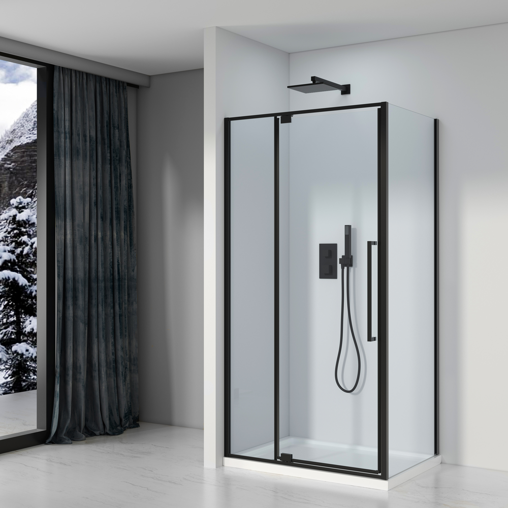 Душевое ограждение датского производителя Black&White в габаритных размерах 100×80 см. Несущая конструкция реализована в виде алюминиевого анодированного профиля с ребром жесткости, в черном матовом цвете. На изделии установлены  закаленные  стекла толщиной 6 мм.– безопасно и надежно.