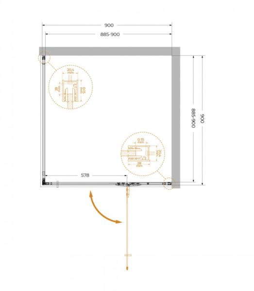 Душевой уголок CEZARES LINER-A-1-90-C-Cr-R правый