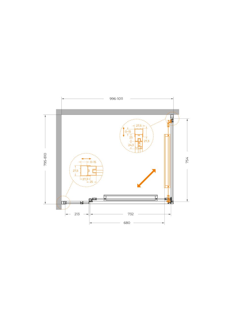 Душевой уголок CEZARES LUX-AH-FS-11-100/80-C-CR хром