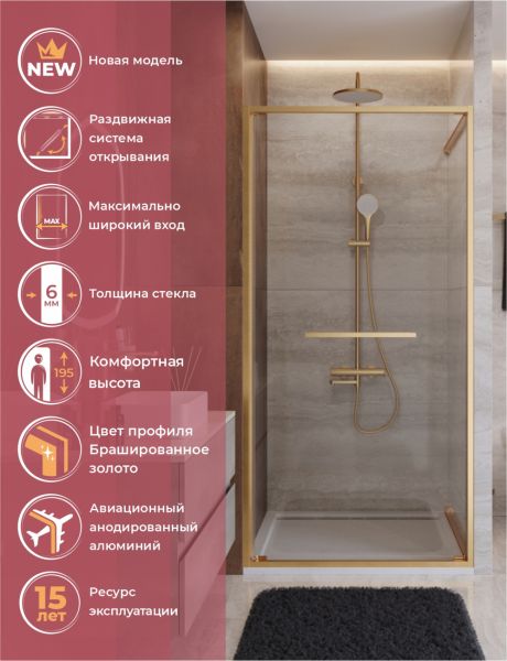 Душевой уголок CEZARES LUX-B-FS-1-100-C-BORO Брашированное золото