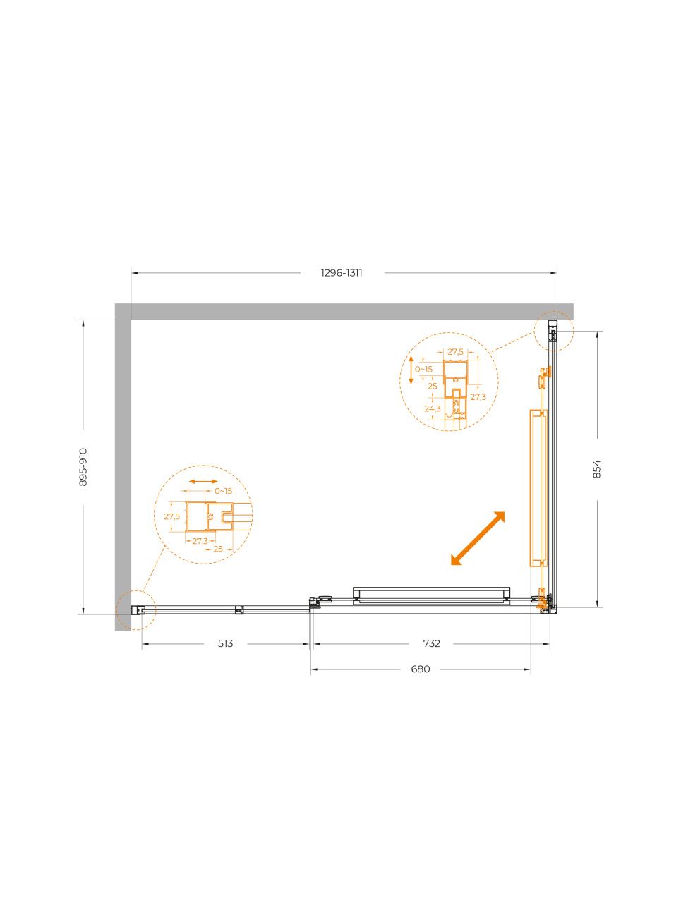 Душевой уголок CEZARES LUX-AH-FS-11-130/90-C-CR хром