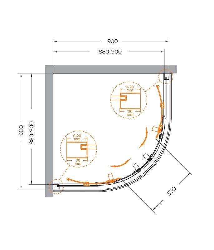 Душевой уголок CEZARES RELAX-304-R-2-90-C-GM
