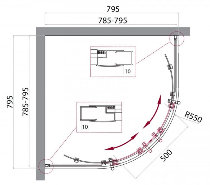 Душевой уголок четверть круга, хром BelBagno UNO-195-R-2-80-C-Cr