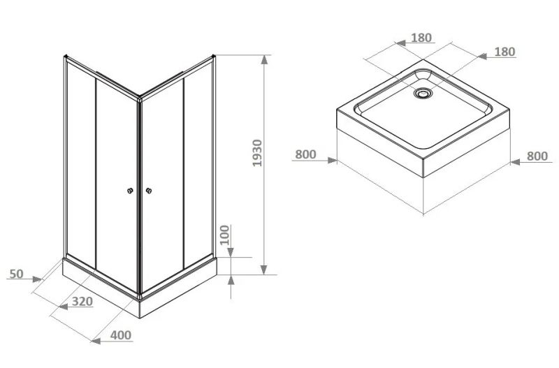 • Поддон белый из ABS-пластика, квадратный, с бортиком по периметру;