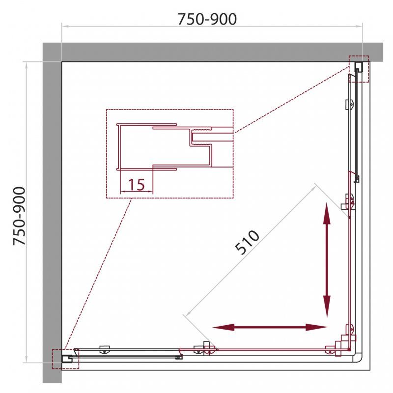 Душевой уголок прямоугольный, хром BelBagno UNIQUE-A-2-75/90-P-Cr