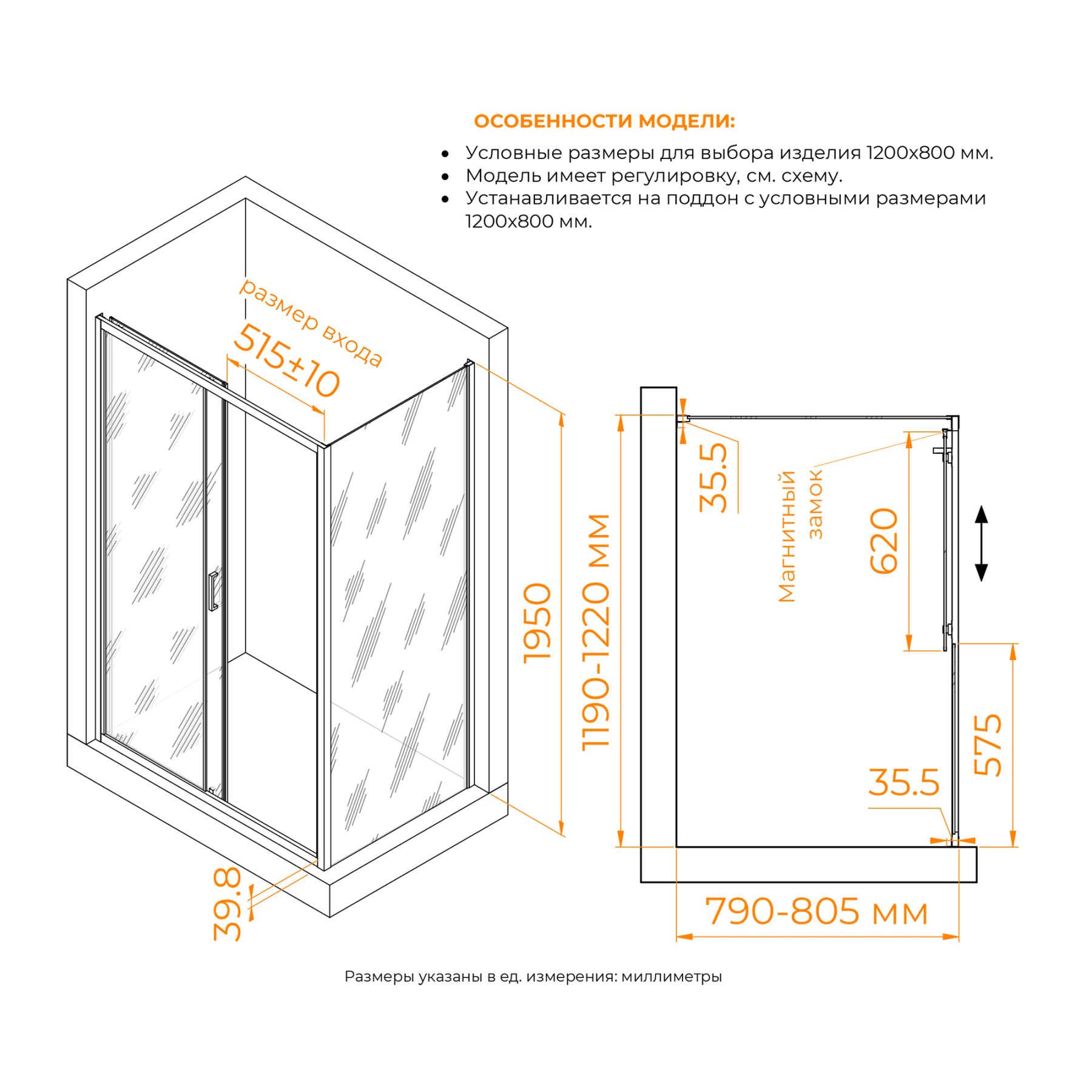 • Размеры с диапазоном регулировок: (1190-1220)x(790-805) мм