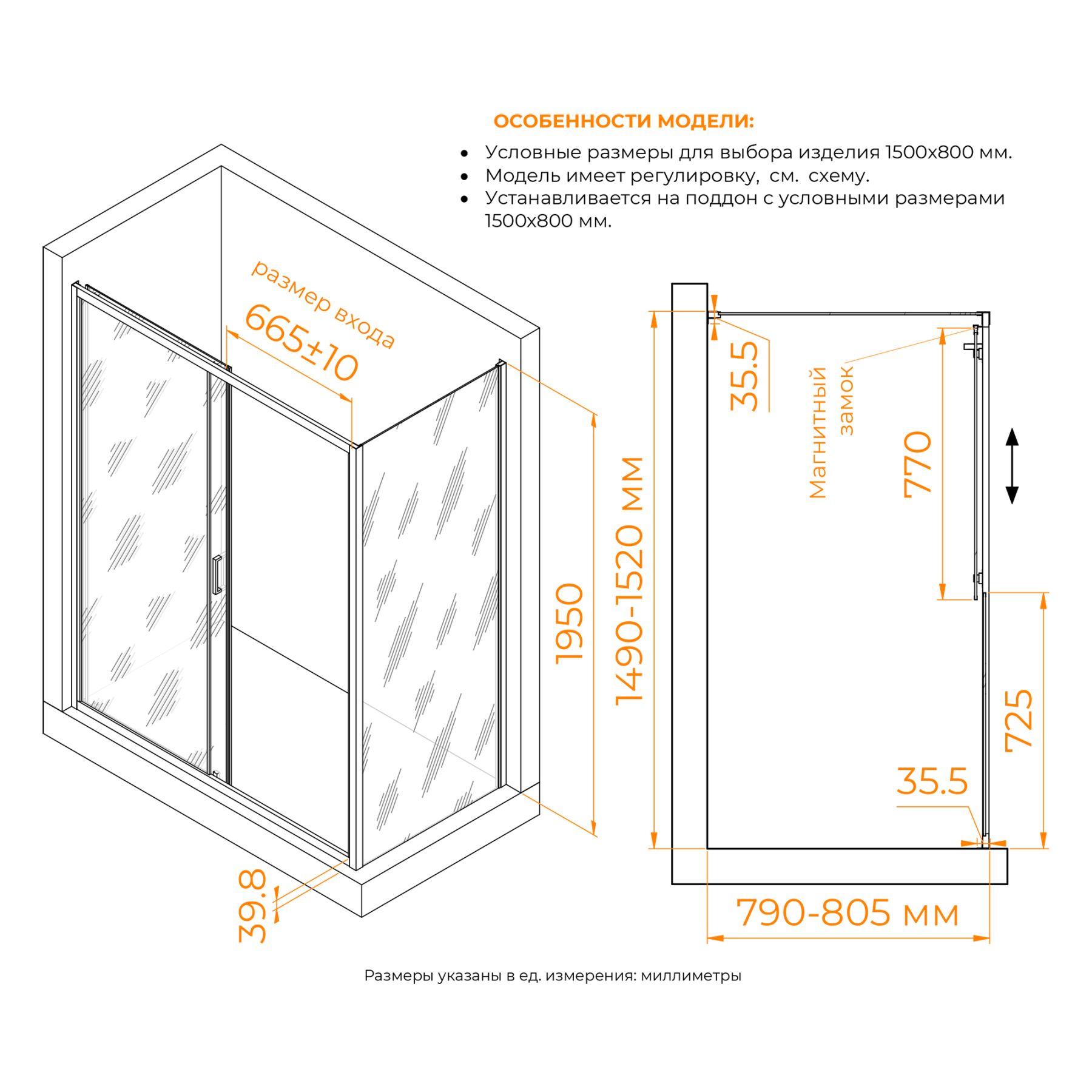 - Размеры с диапазоном регулировок: (1190-1220)x(790-805) мм