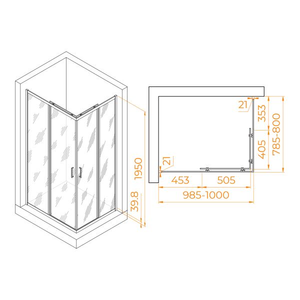 Душевой уголок RGW PA-040B 3508104080-24 80x100см чёрный купить