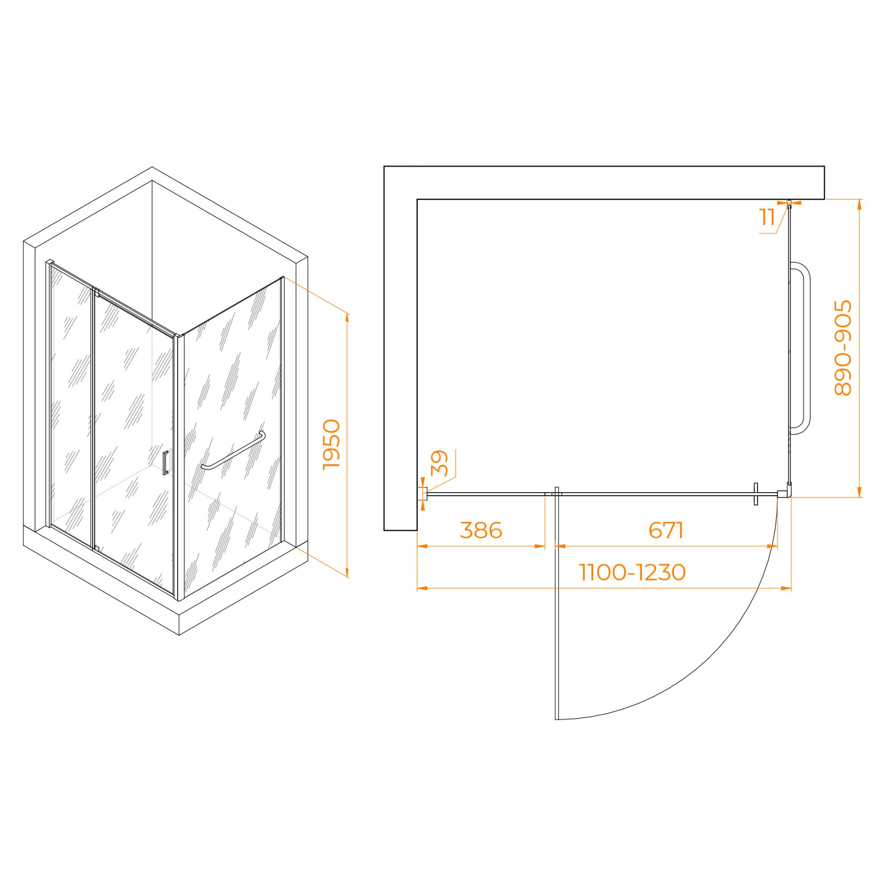 Душевой уголок RGW PA-078-1 (RGW PA-008 + Z-060-2) 3508078119-11 110x90см хром