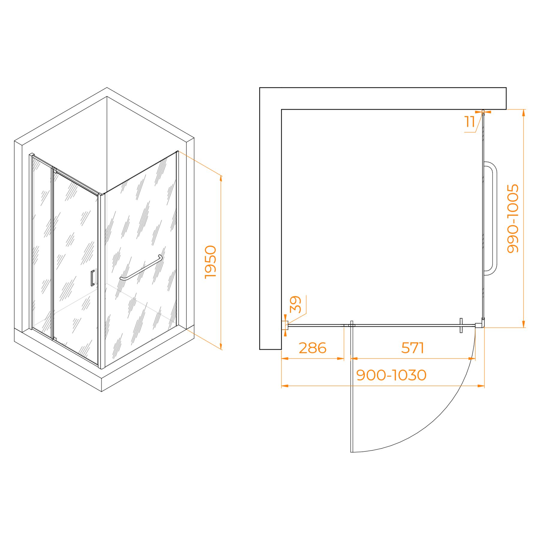 Душевой уголок RGW PA-078-1B (RGW PA-008B + Z-060-2B) 3508078190-14 90x100см чёрный