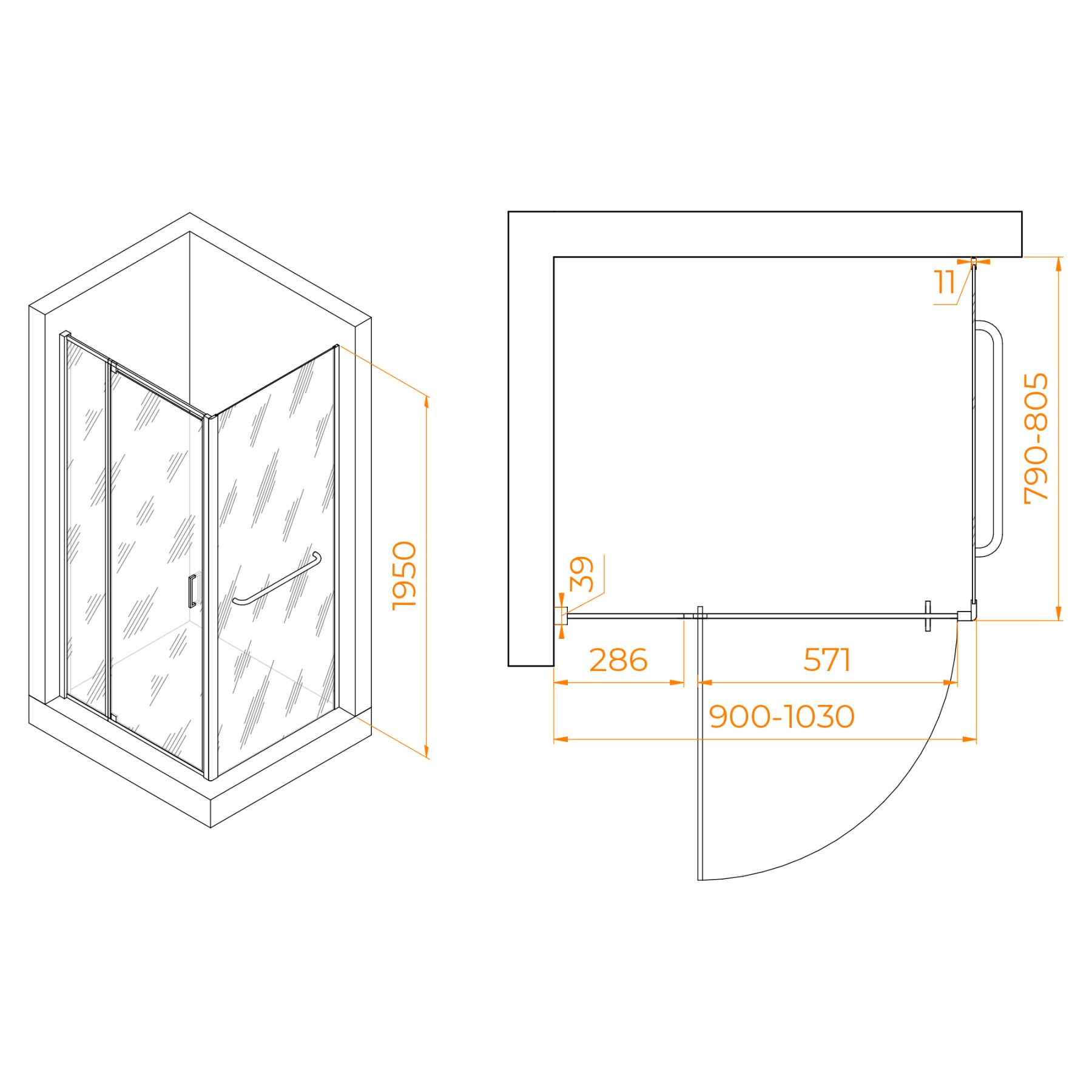 Душевой уголок RGW PA-078-1B (RGW PA-008B + Z-060-2B) 3508078198-14 90x80см чёрный