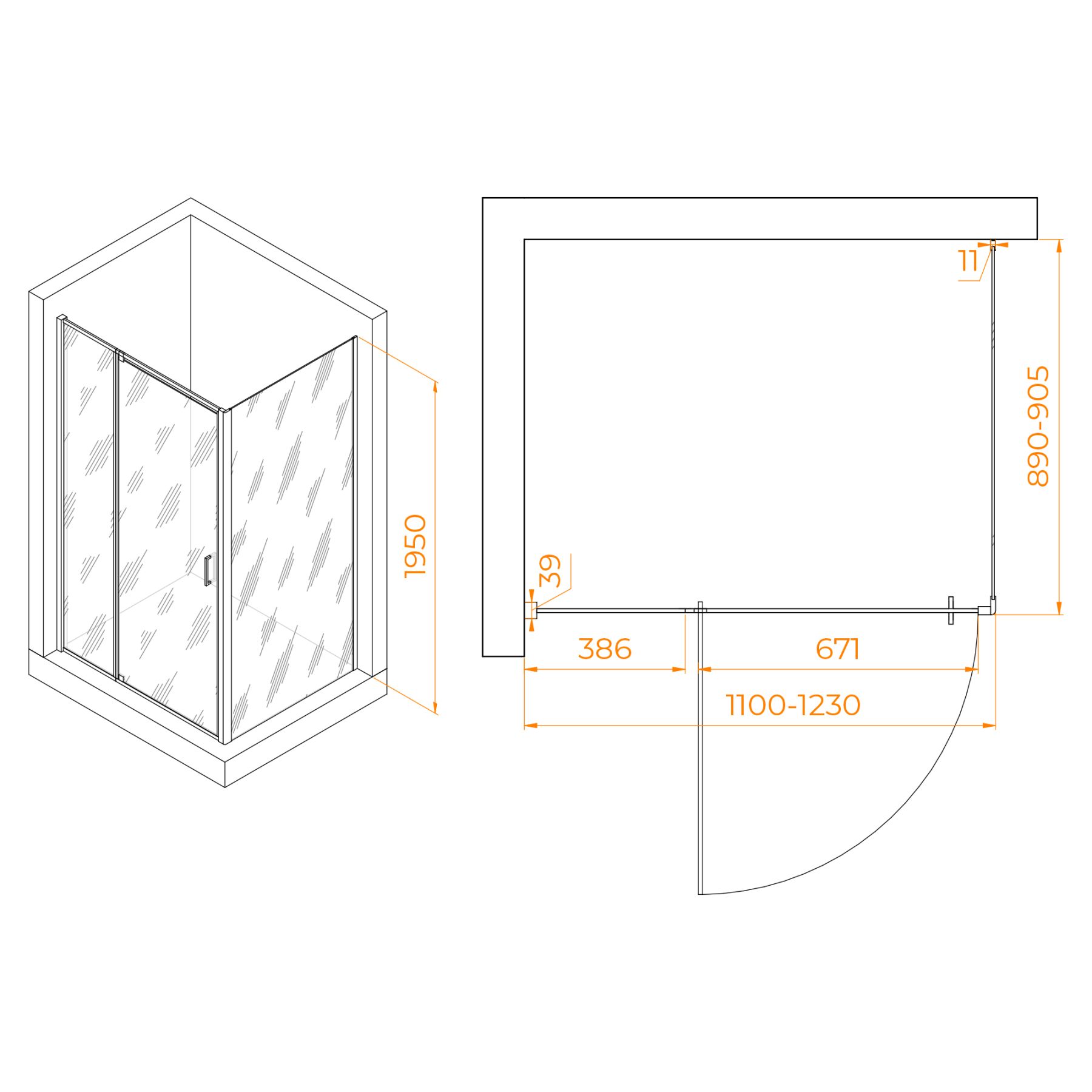Душевой уголок RGW PA-078 представляет собой комплект из распашной душевой двери RGW PA-008 и боковой панели RGW Z-050-2, образующий прямоугольную конструкцию размером 110 х 90 см с регулируемыми габаритами (1100-1230)×(890-905) мм. Для использования потребуется отдельно приобрести трап или поддон.
