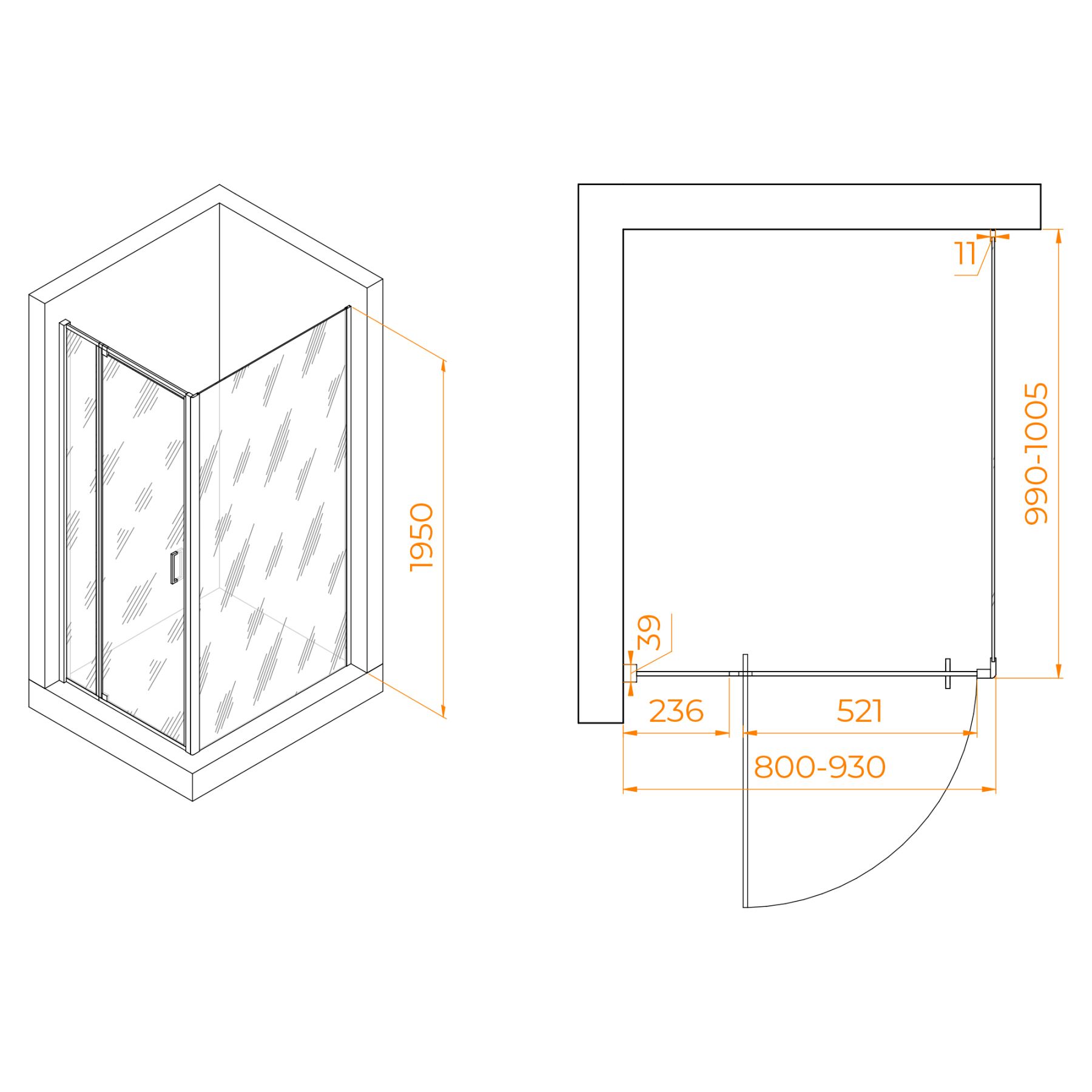Душевой уголок RGW PA-078 (RGW PA-008 + Z-050-2) 350807880-11 80x100см хром