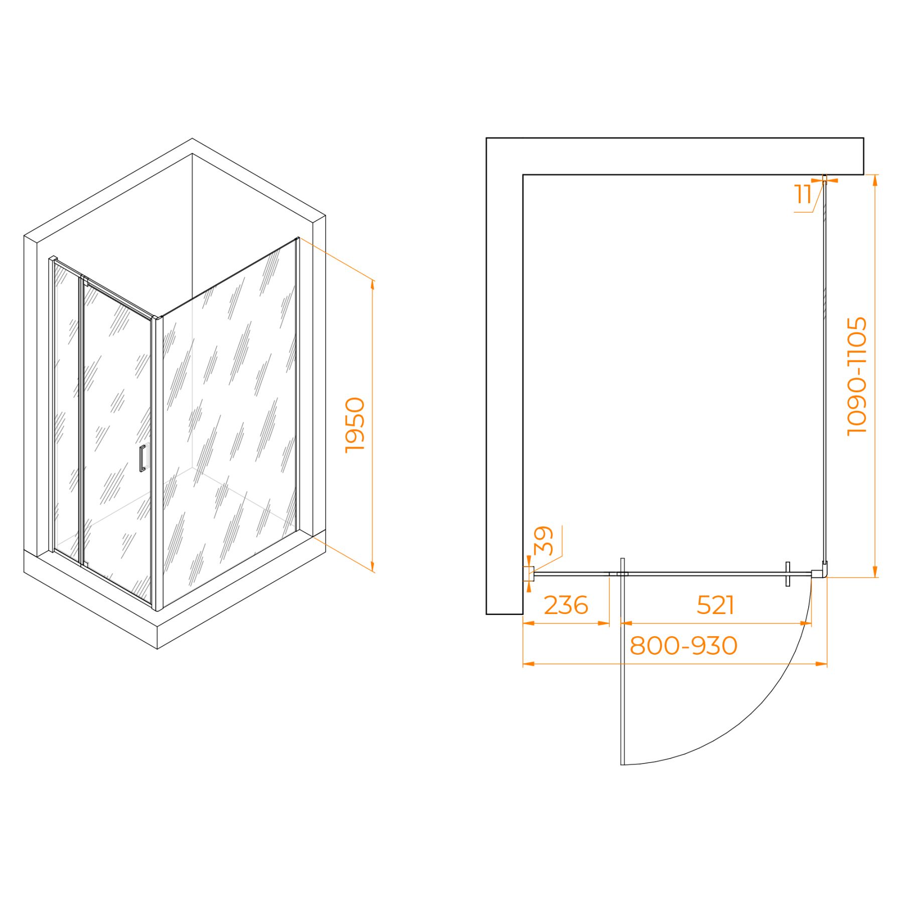 Душевой уголок RGW PA-078 (RGW PA-008 + Z-050-2) 350807881-11 80x110см хром