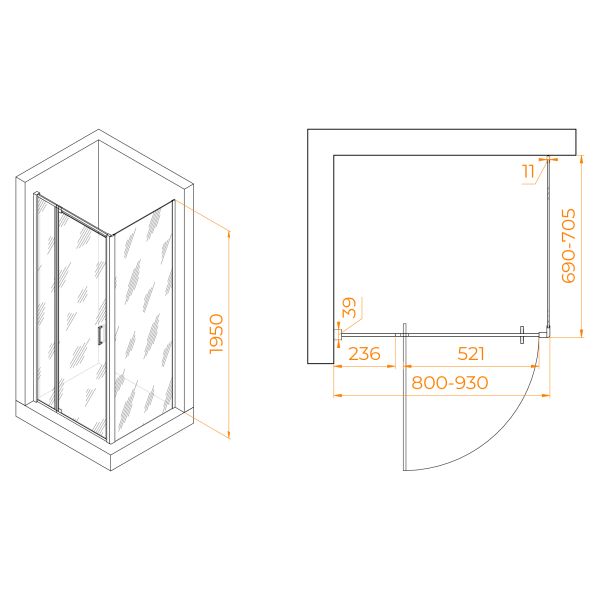 Душевой уголок RGW PA-078 (RGW PA-008 + Z-050-2) 350807887-11 80x70см хром