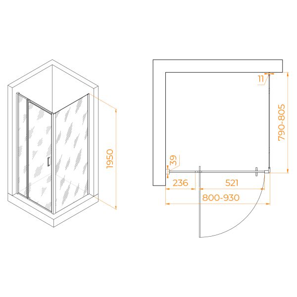Душевой уголок RGW PA-078B (RGW PA-008B + Z-050-2B) 350807888-14 80x80см чёрный