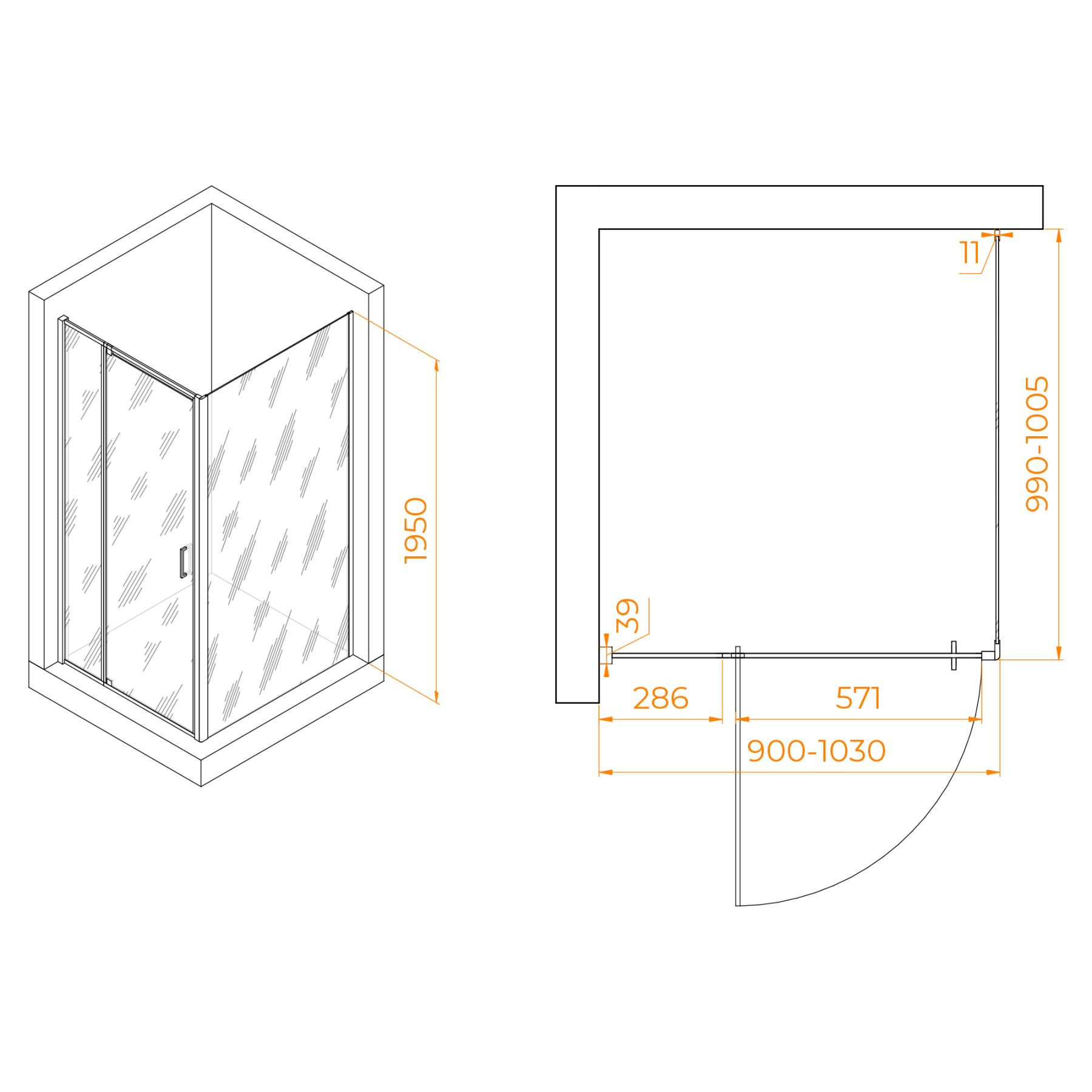 Душевой уголок RGW PA-078B (RGW PA-008B + Z-050-2B) 350807890-14 90x100см чёрный